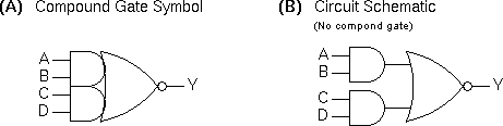 Since compound gates are only found on ICs, compound gate symbols are not found in schematic capture packages not customized for IC design (although many packages allow you to create your own symbols).