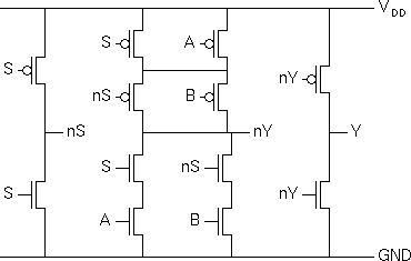 (A) Shows the symbol for a compound gate which is implemented using 8 transistors: