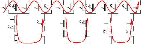 Occasionally you will do better to consider a flat schematic such as the following example of euler path investigation in a six NAND gate D-Type (Euler paths that span multiple NANDs cannot be seen in a hierarchical schematic):
