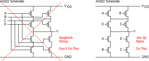 This document will show you some examples of simple schematics and then discuss the key issues involved in producing good schematics for yourself. This document cannot tell you exactly how to design all of your schematics; you will have to use your own judgement in each individidual case to give the best presentation of your circuit.