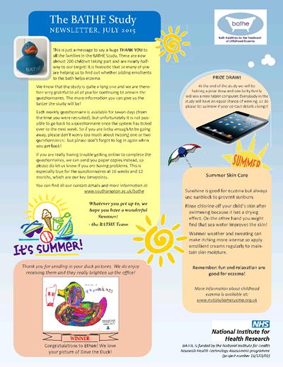 This is just a message to say a huge THANK YOU to all the families in the BATHE Study. There are now almost 200 children taking part and we are nearly half way to our target!