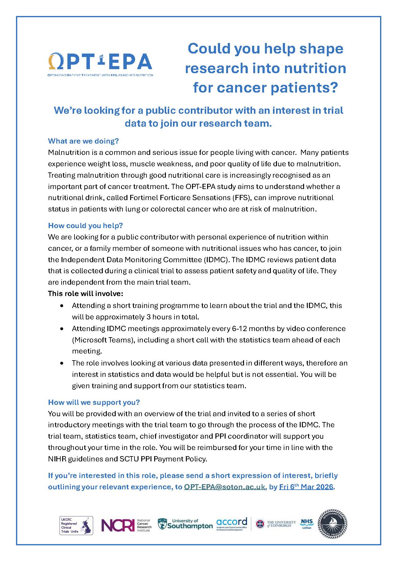 We're looking for someone with lived experience in this area, and an interest in trial data and statistics, to join the Independent Data Monitoring Committee for the OPT-EPA trial.