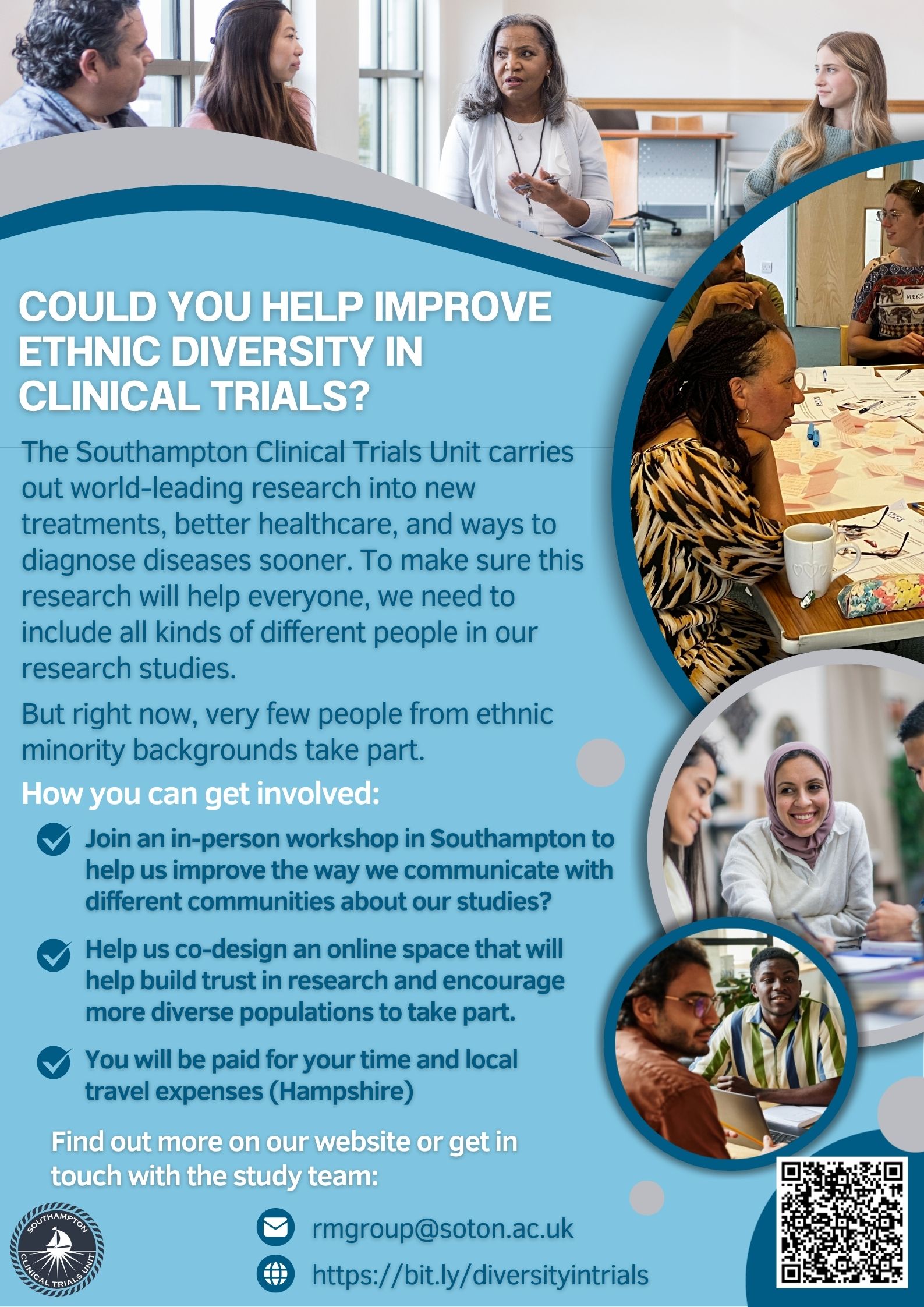 Despite work at the Southampton Clinical Trials Unit (SCTU) to engage and involve people from different ethnic groups, the people currently taking part in our studies do not always represent the race and ethnicity of the whole population or those affected by different diseases.