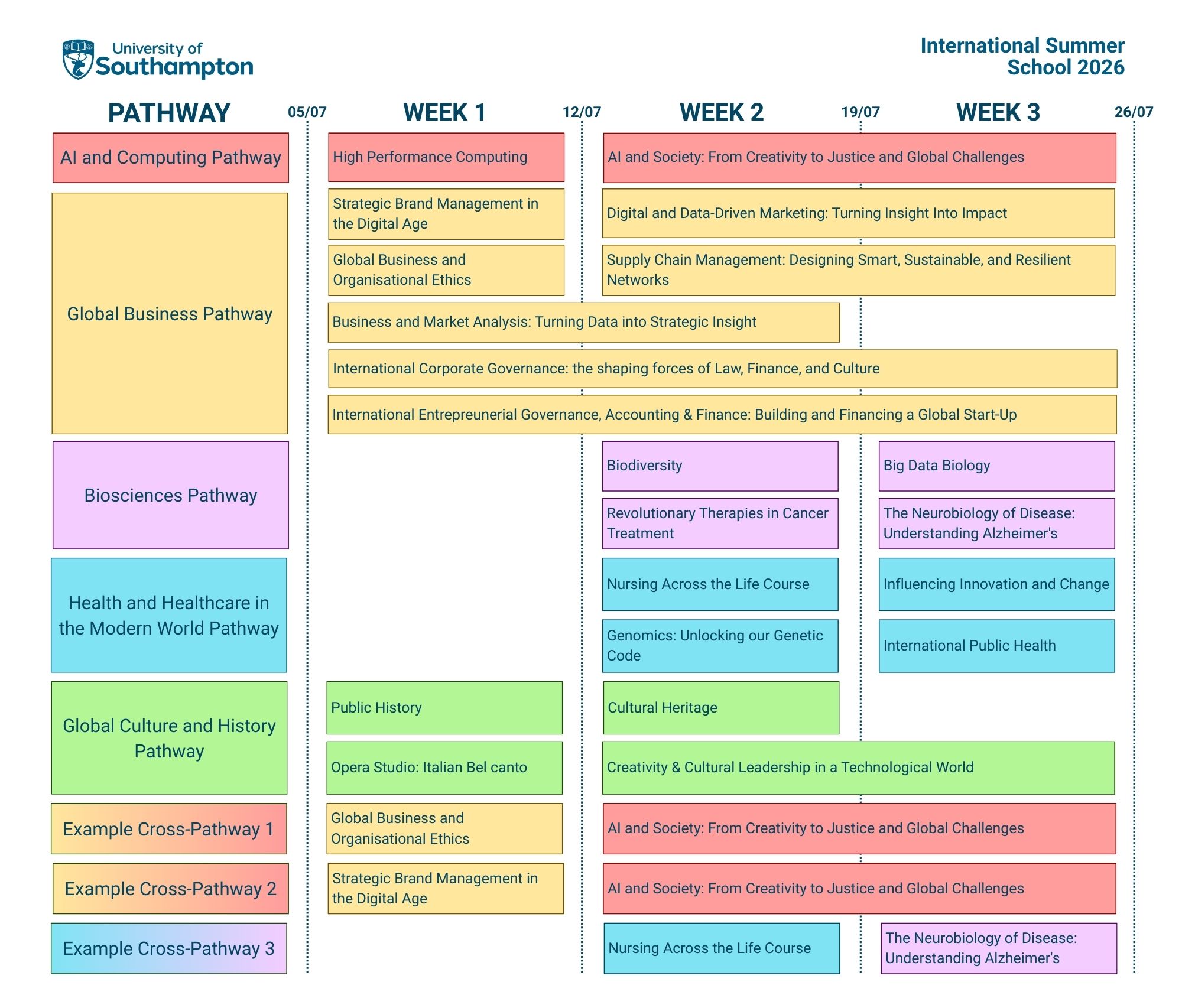 You can choose to take a single course or multiple courses. Below are some possible pathways you could take for your University of Southampton Summer School experience. You are welcome to combine courses from different pathways. There are 3 examples of this below.