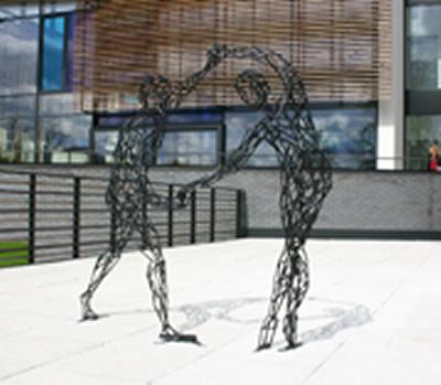 She explained that the sculpture was created by intertwining five metre lengths of steel rod in three different thicknesses building the figures up like a jigsaw puzzle.