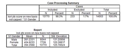 We mentioned above that one easy way of seeing if there is a difference in GCSE score between different groups of people is to calculate and compare the mean values of GCSE score in each group you are investigating. Let’s say we are interested in any differences in educational achievement based on sex. We can attempt to answer this question by comparing mean GCSE scores between girls and boys in Year 11. We can use the Compare Means command to determine if sex has any bearing on GCSE scores. (We could obviously ask many questions like this – which you can do by yourself after we’ve run this first mean comparison together.)