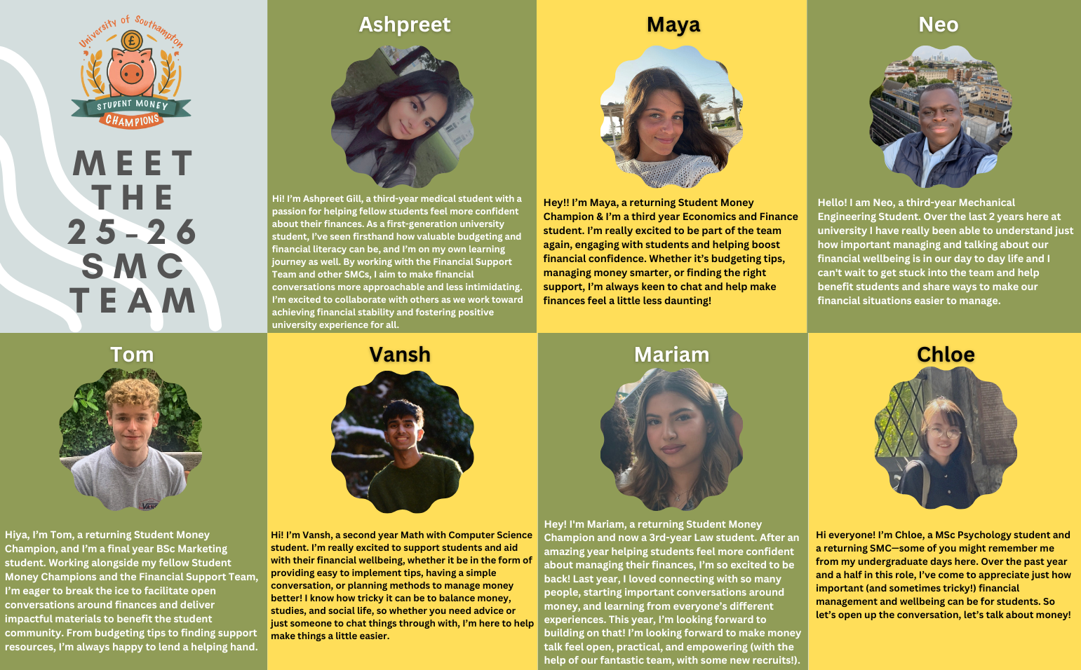 Apart from our roles as Student Money Champions, we are all students. We aim to be the bridge between students and the university’s financial support team, ensuring everyone is aware of the support and resources available to them. Additionally, we strive to gather student feedback and communicate their needs directly to the financial support team. We also want to share helpful financial tips from a student perspective!