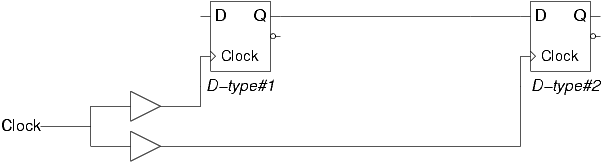 The equation for hazard avoidance now gives us an upper limit for the permitted clock skew in terms of characteristics of a D-Type: