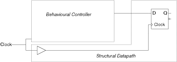 With a cross simulation we simulate a behavioural module (e.g. controller) alongside a structural module (e.g. datapath).