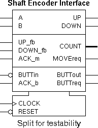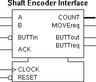 The shaft encoder interface has two inputs, A and B, from the shaft encoder and produces a multibit COUNT value indicating the number of pulses counted in a particular direction.
