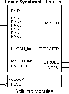 The frame synchronization unit that you will design, monitors the incoming DATA signal and produces a STROBE output coincident with the first bit of frame data (d0 in the above diagram) when the unit has locked onto (i.e. synchronized with) the DATA signal. In addition a SYNC output indicates that synchronization has been achieved. This output remains high until synchronization is lost.