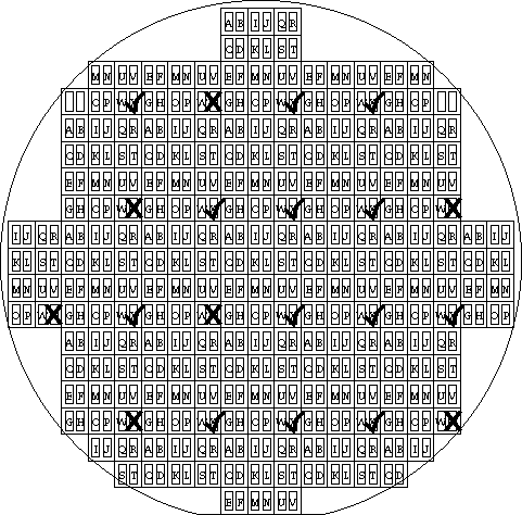 Where random process failures are observed, such as an output which works on one site but not on another, you should use your test vectors to isolate particular circuits which are in error. It is then possible to build up a map of these process failures for the whole wafer, showing where failures are more frequent and indicating where correct chips can be found. This map should contain as much information as time allows. It is usual to record static current consumption on such a map as it provides an extra indication of the health of a circuit.