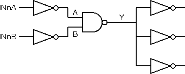 The corresponding representations for the two input NAND gate, EX_NAND2, are: